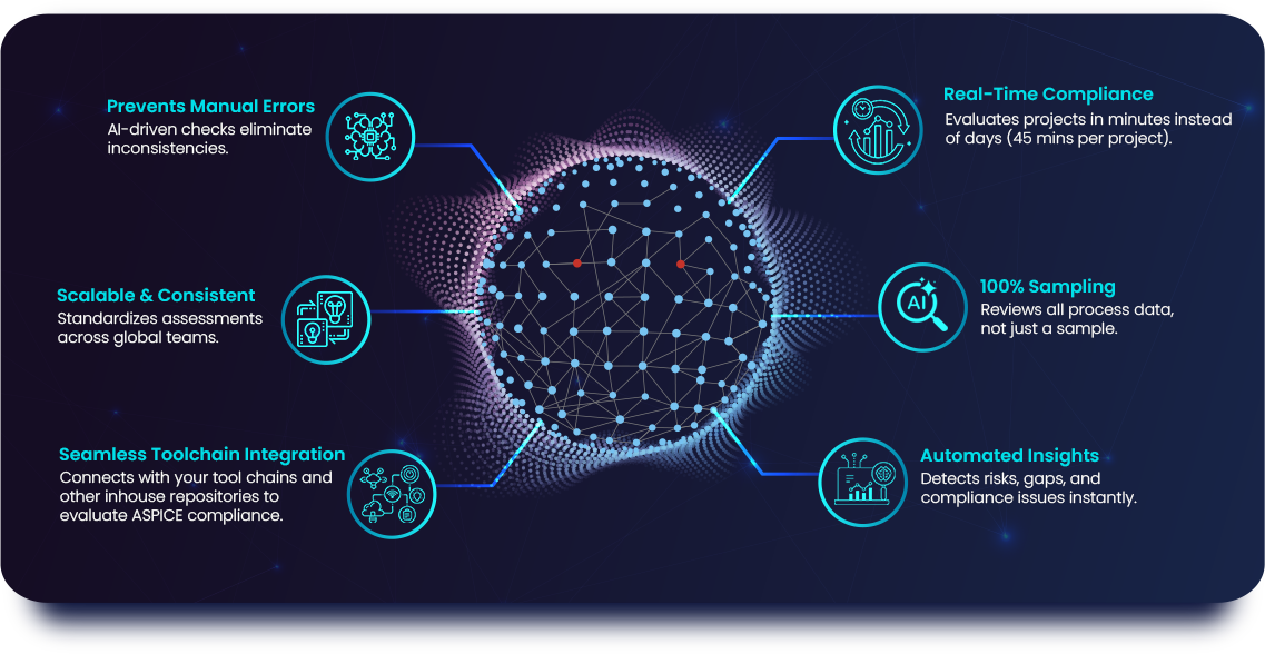 Seamless Toolchain Integration – Connects with your tool chains and other inhouse repositories to evaluate ASPICE compliance.
